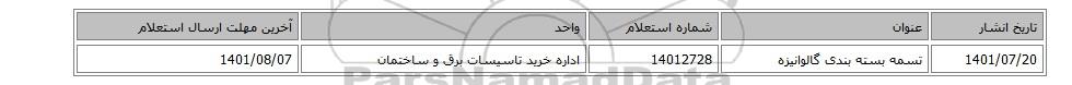 تاریخ انشارعنوانشماره استعلامواحدآخرین مهلت ارسال استعلام