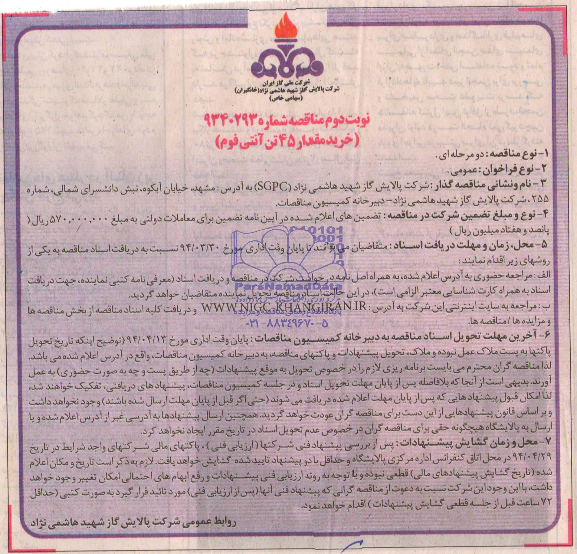 مناقصه خرید مقدار 45 تن آنتی فوم, آگهی مناقصه , مناقصه خرید مقدار 45 تن آنتی فوم