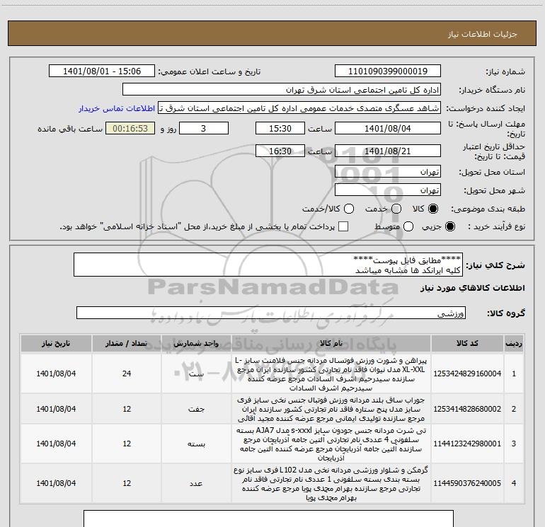 نام دستگاه خریدار:اداره کل تامین اجتماعی استان شرق تهران