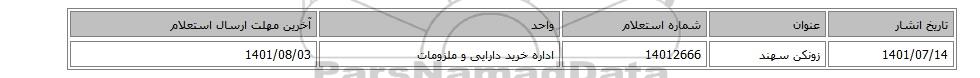| 1401/07/14 | زونکن سهند | 14012666 | اداره خرید دارایی و ملزومات | 1401/08/03 |