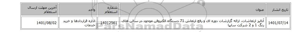تاریخ انشارعنوانشماره استعلامواحدآخرین مهلت ارسال استعلام