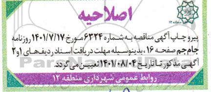 اصلاحیه مناقصه حفظ و نگهداری فضای سبز و امور و از کلیه افراد متخصص و شرکتها واجد شرایط دعوت به عمل میآید در مناقصه با کد خبرگزاری پارس نماد: 5063356 شرکت نمایند.