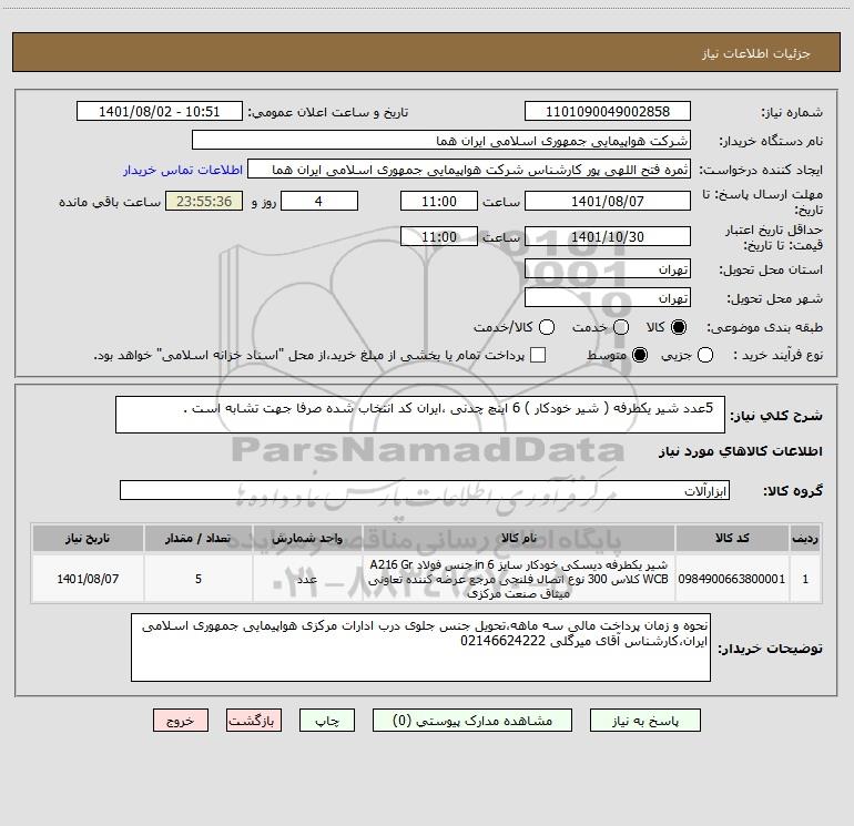 نام دستگاه خریدار:شرکت هواپیمایی جمهوری اسلامی ایران هما