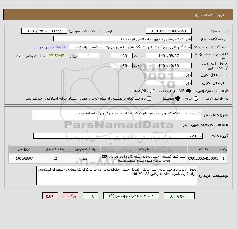 شرح کلی نیاز: 12 عدد شیر فلکه کشویی 6 اینچ ،ایران کد انتخاب شده صرفا جهت تشابه است .
