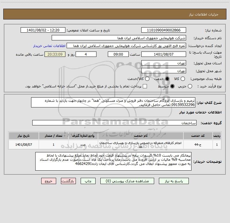 نام دستگاه خریدار:شرکت هواپیمایی جمهوری اسلامی ایران هما
