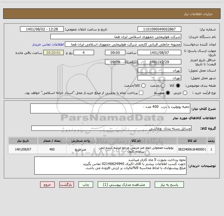 نام دستگاه خریدار:شرکت هواپیمایی جمهوری اسلامی ایران هما