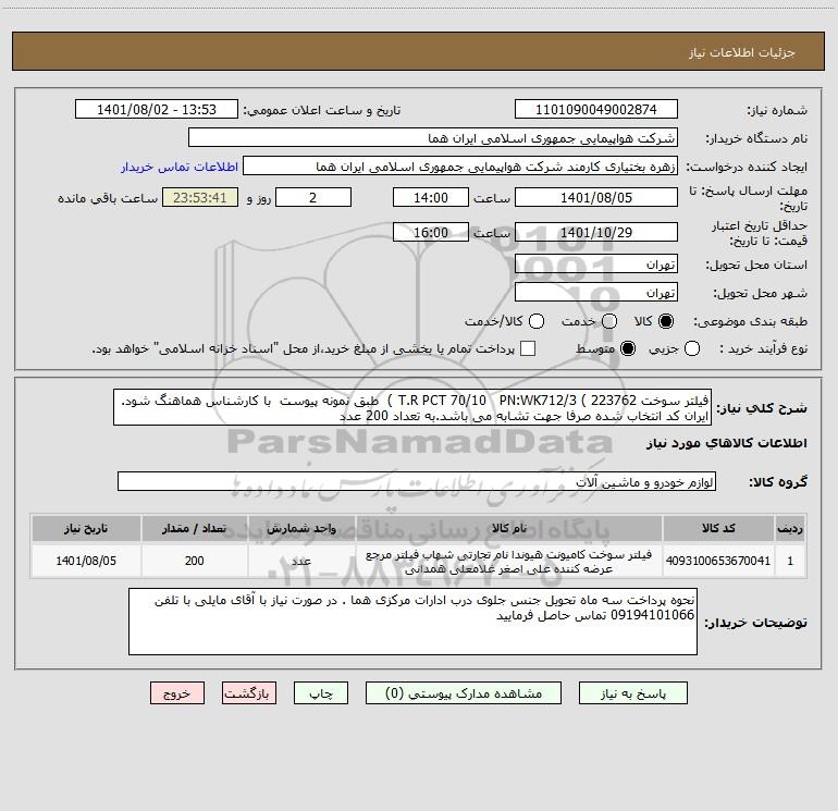 نام دستگاه خریدار:شرکت هواپیمایی جمهوری اسلامی ایران هما