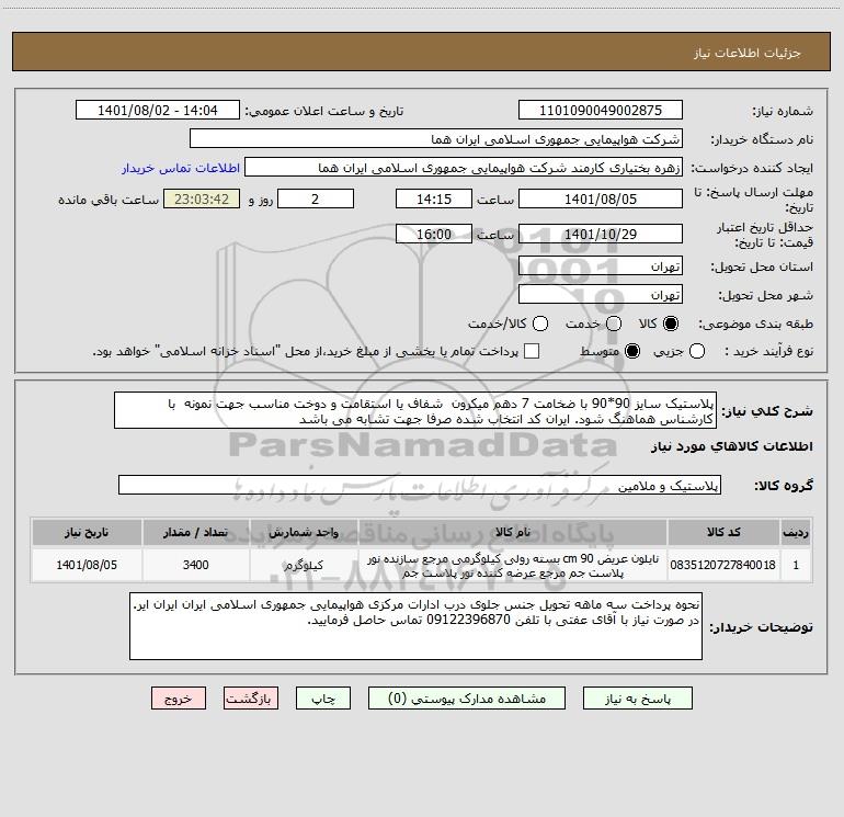 نام دستگاه خریدار:شرکت هواپیمایی جمهوری اسلامی ایران هما