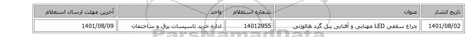 تاریخ انشارعنوانشماره استعلامواحدآخرین مهلت ارسال استعلام