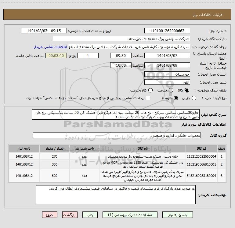 نام دستگاه خریدار:شرکت سهامی برق منطقه ای خوزستان