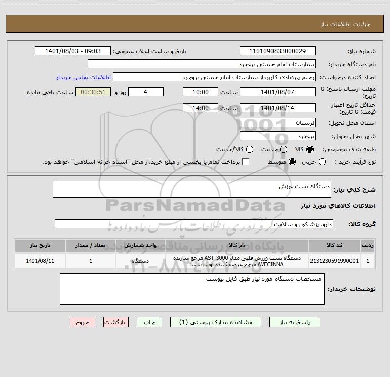 نام دستگاه خریدار:بیمارستان امام خمینی بروجرد