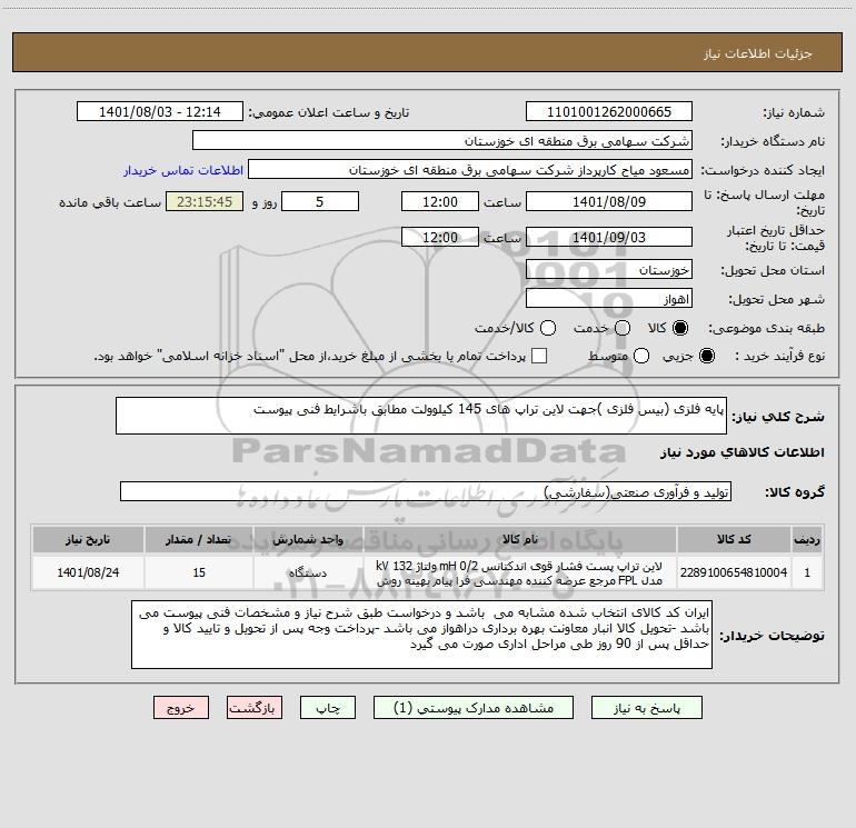 نام دستگاه خریدار:شرکت سهامی برق منطقه ای خوزستان