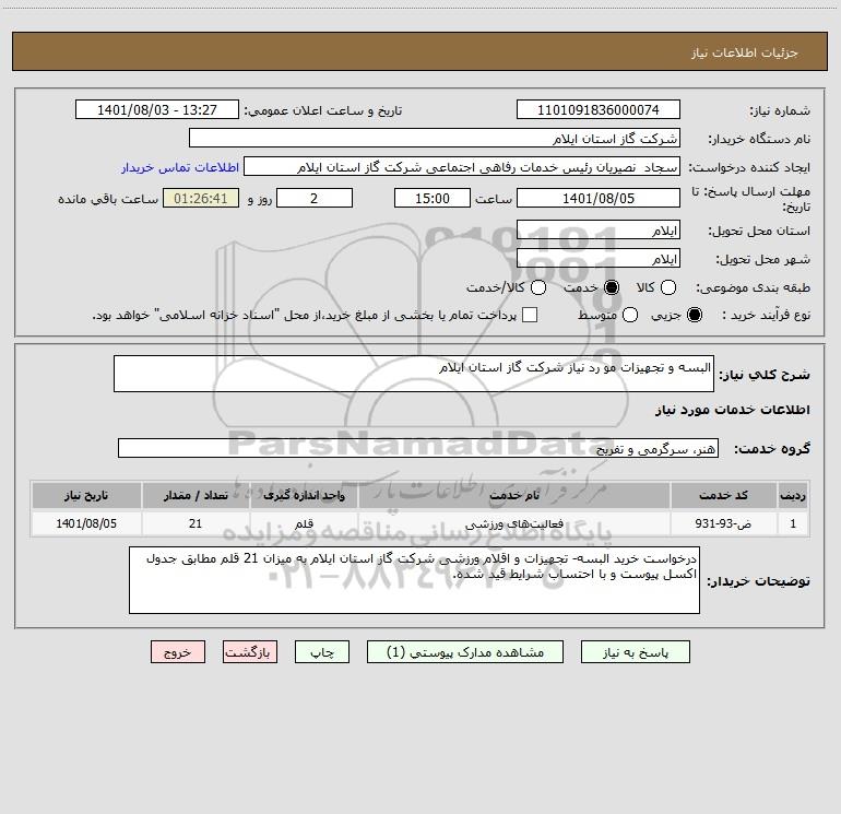 شرح کلی نیاز: البسه و تجهیزات مو رد نیاز شرکت گاز استان ایلام