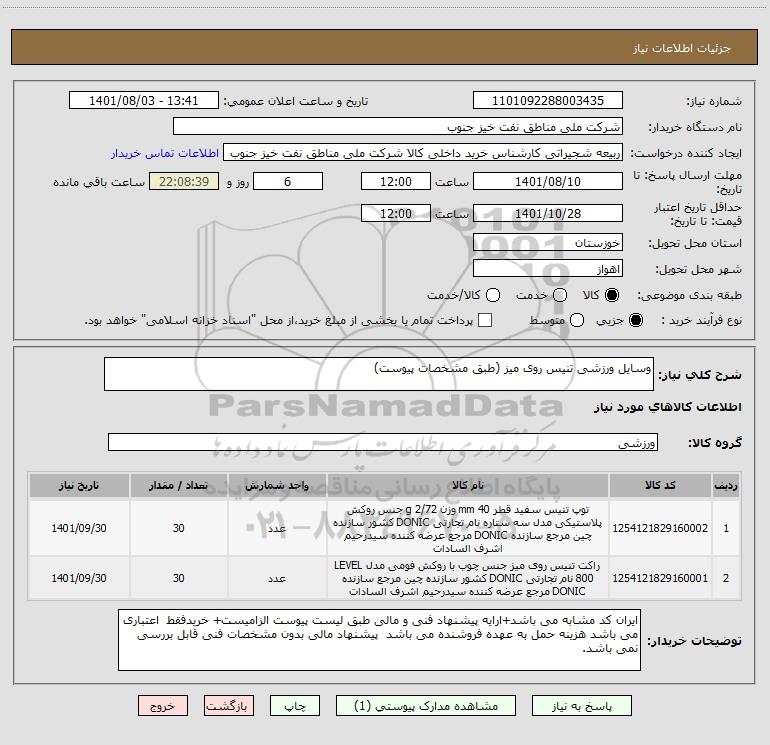 نام دستگاه خریدار:شرکت ملی مناطق نفت خیز جنوب
