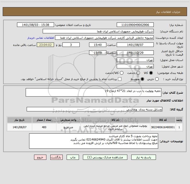 نام دستگاه خریدار:شرکت هواپیمایی جمهوری اسلامی ایران هما