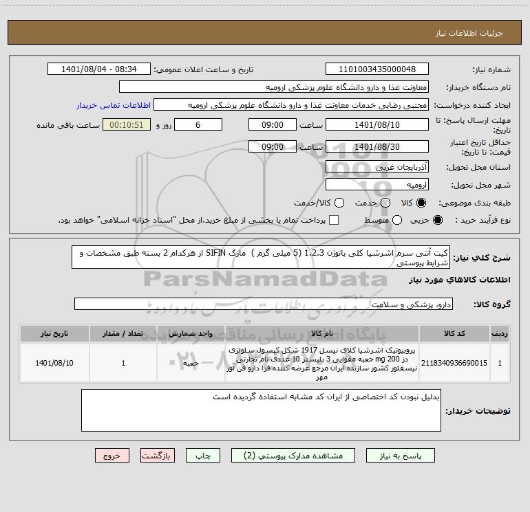 نام دستگاه خریدار:معاونت غذا و دارو دانشگاه علوم پزشکی ارومیه