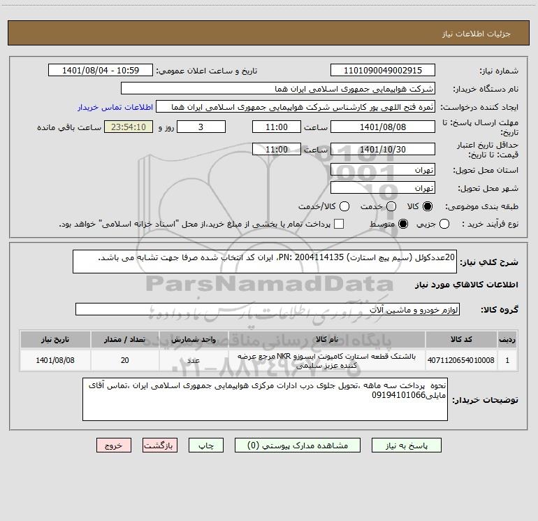 استعلام 20عددکوئل (سیم پیچ استارت) PN: 2004114135، ایران کد انتخاب شده صرفا جهت تشابه می باشد., استعلام 20عددکوئل (سیم پیچ استارت) PN: 2004114135، ایران کد انتخاب شده صرفا جهت تشابه می باشد.
