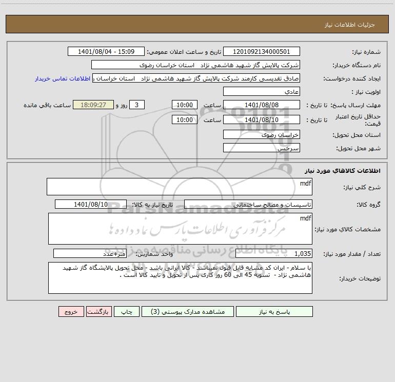 مشخصات کالای مورد نیاز: mdf