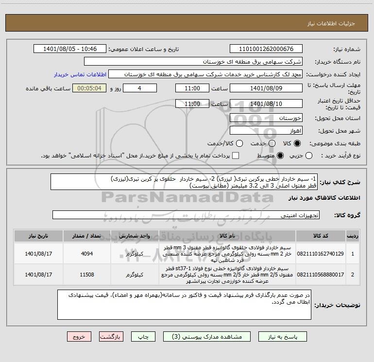 نام دستگاه خریدار:شرکت سهامی برق منطقه ای خوزستان
