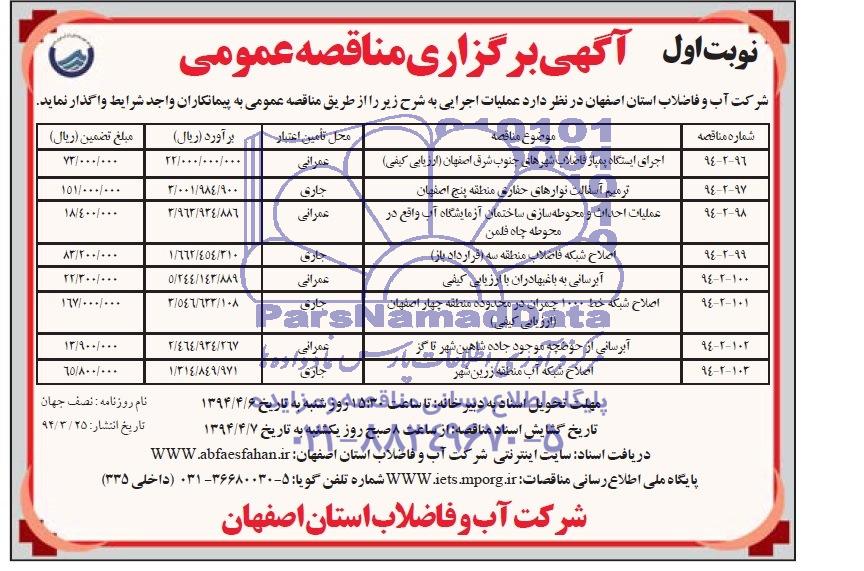 شرکت آب و فاضلاب استان اصفهان درنظردارد فراخوان عمومی ارزیابی کیفی به شرح زیر را با شرایط ذیل برگزار نماید