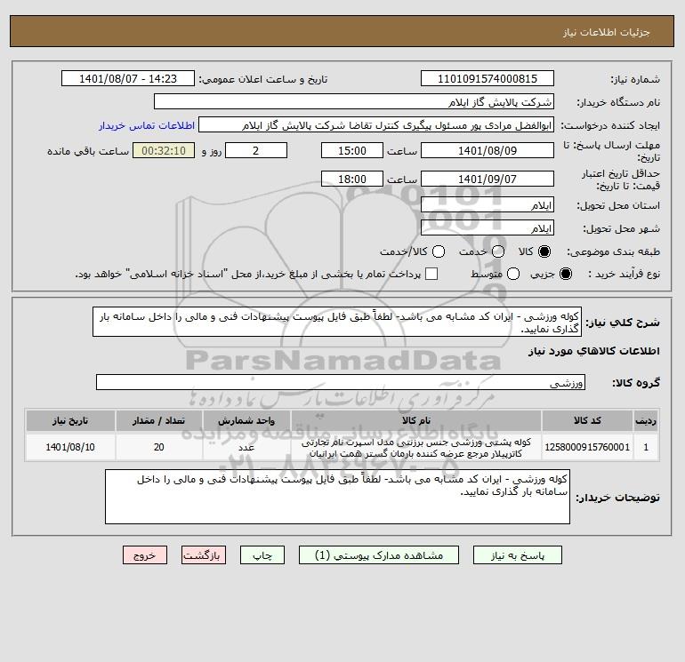 توضیحات خریدار:کوله ورزشی - ایران کد مشابه می باشد- لطفاً طبق فایل پیوست پیشنهادات فنی و مالی را داخل سامانه بار گذاری نمایید.
