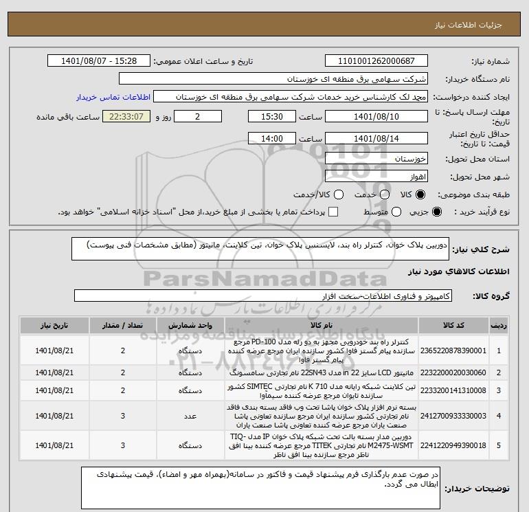 نام دستگاه خریدار:شرکت سهامی برق منطقه ای خوزستان