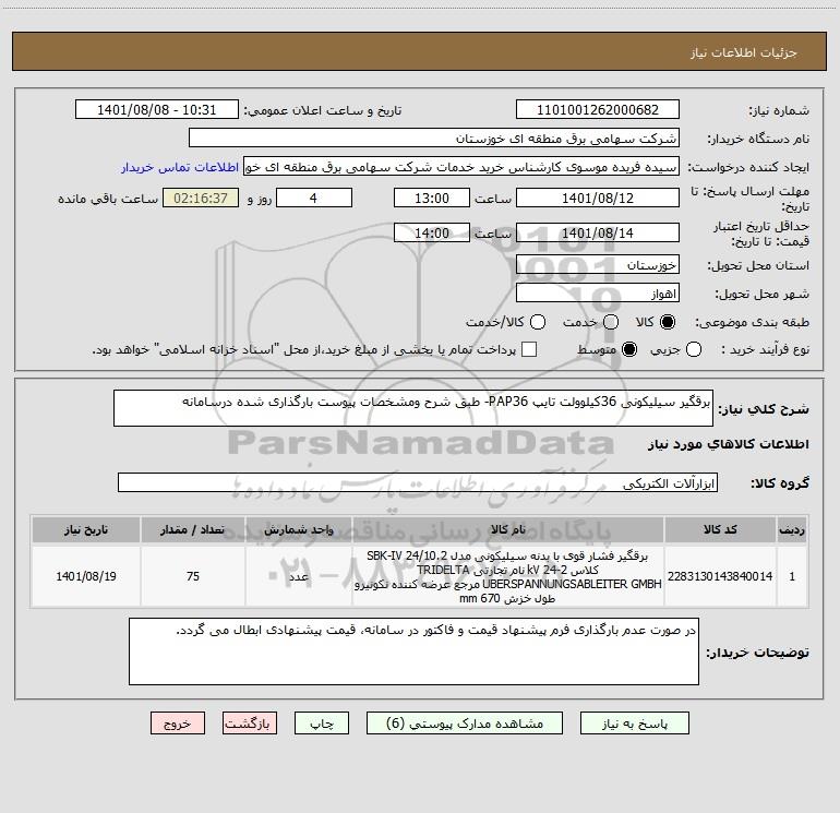 نام دستگاه خریدار:شرکت سهامی برق منطقه ای خوزستان