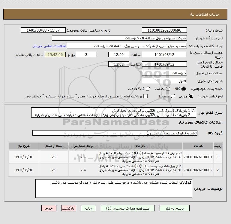 نام دستگاه خریدار:شرکت سهامی برق منطقه ای خوزستان