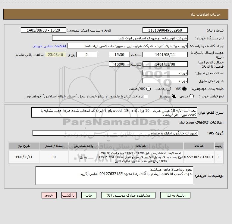 استعلام تخته سه لایه 18 میلی متری - 10 ورق (plywood 18 mm )- ایران کد انتخاب شده صرفا جهت تشابه با کالای مورد نظر میباشد, استعلام تخته سه لایه 18 میلی متری - 10 ورق (plywood 18 mm )- ایران کد انتخاب شده صرفا جهت تشابه با کالای مورد نظر میباشد