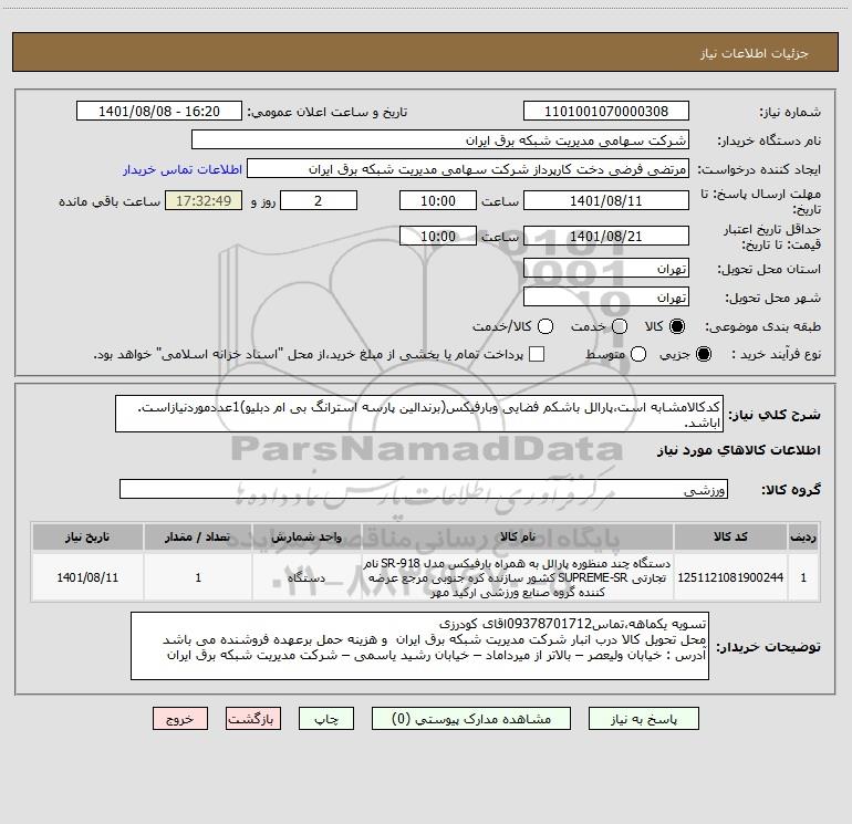 نام دستگاه خریدار:شرکت سهامی مدیریت شبکه برق ایران