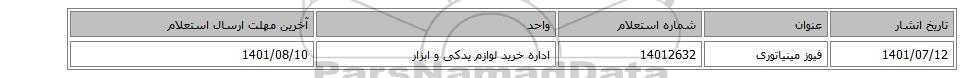 | 1401/07/12 | فیوز مینیاتوری | 14012632 | اداره خرید لوازم یدکی و ابزار | 1401/08/10 |