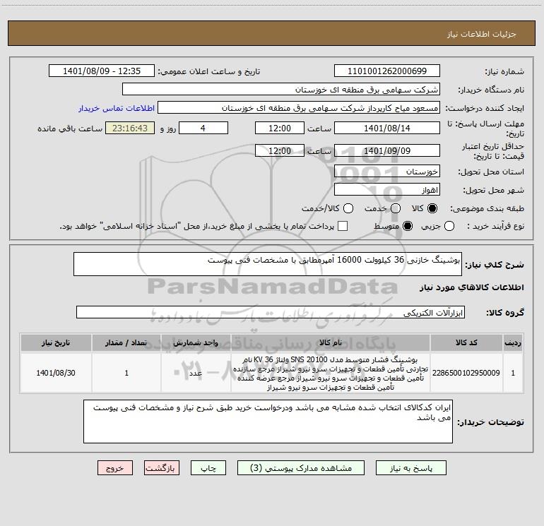 نام دستگاه خریدار:شرکت سهامی برق منطقه ای خوزستان