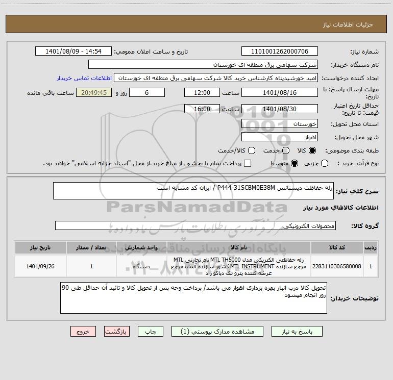 نام دستگاه خریدار:شرکت سهامی برق منطقه ای خوزستان