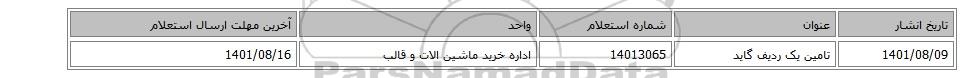 1401/08/09تامین یک ردیف گاید14013065اداره خرید ماشین الات و قالب1401/08/16