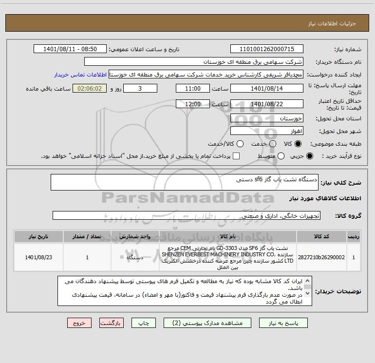 نام دستگاه خریدار:شرکت سهامی برق منطقه ای خوزستان