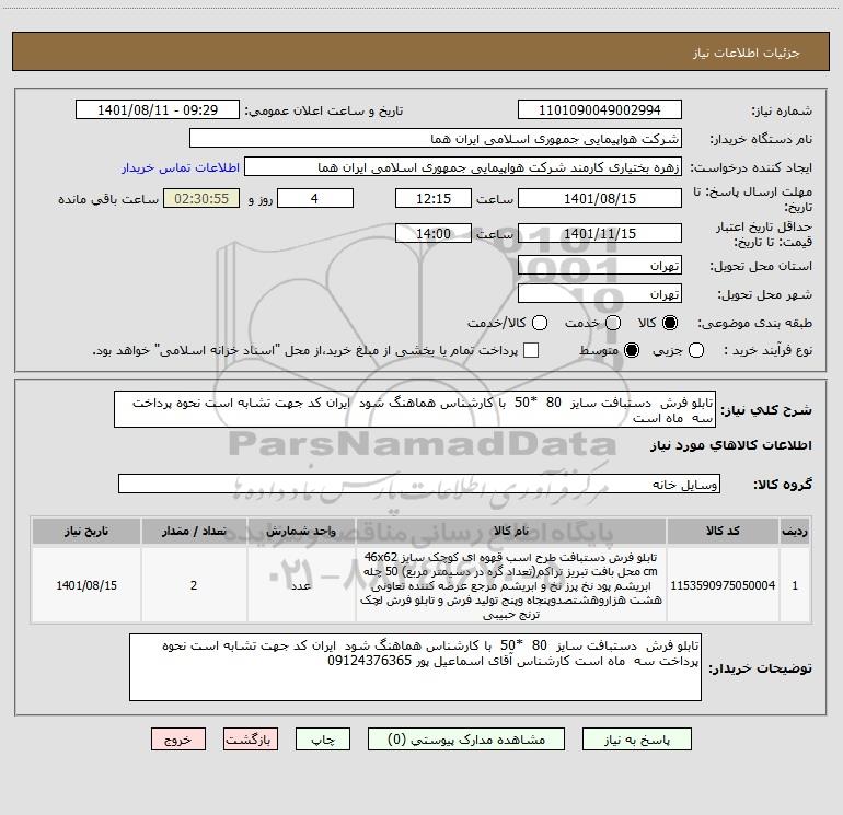نام دستگاه خریدار:شرکت هواپیمایی جمهوری اسلامی ایران هما