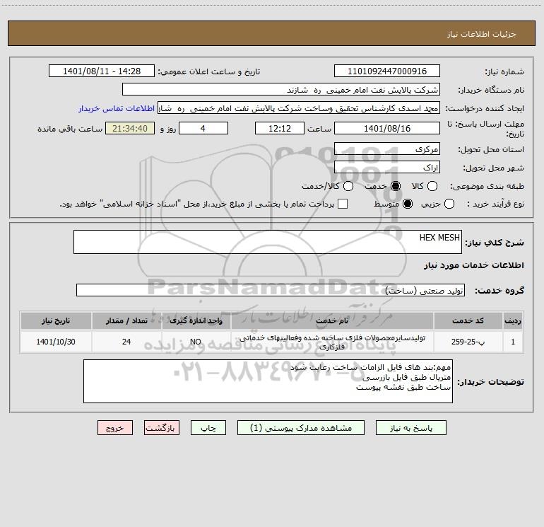 شماره نیاز: 1101092447000916