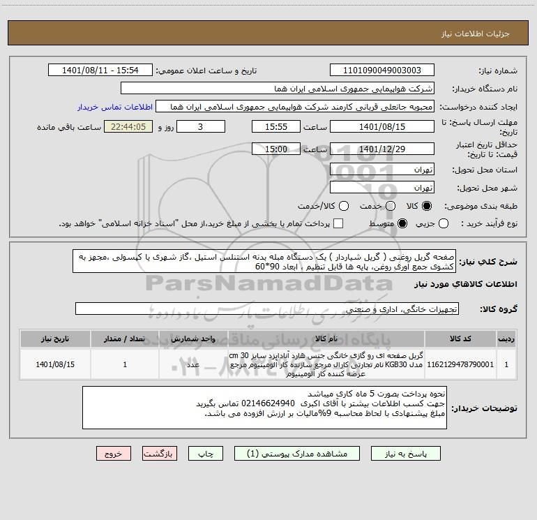 نام دستگاه خریدار:شرکت هواپیمایی جمهوری اسلامی ایران هما