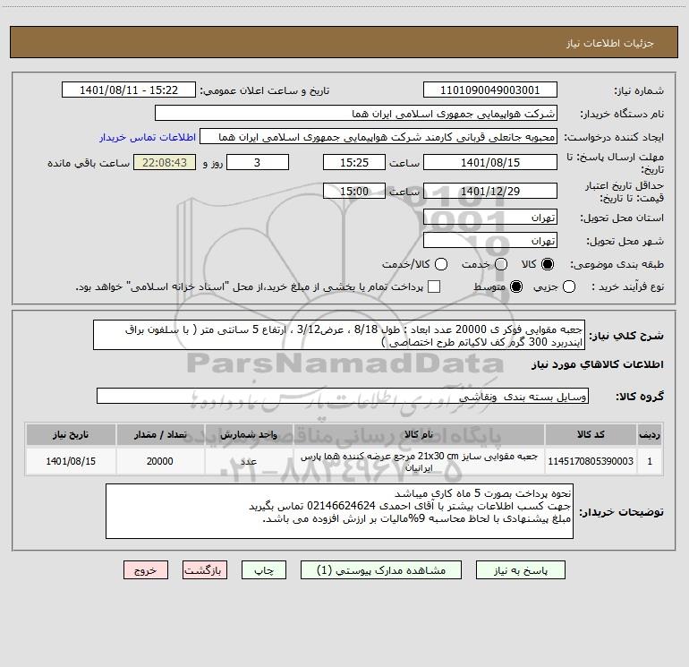 نام دستگاه خریدار:شرکت هواپیمایی جمهوری اسلامی ایران هما