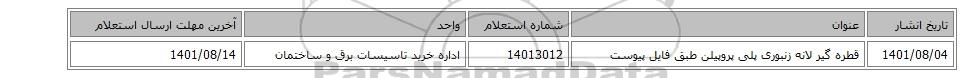 تاریخ انشارعنوانشماره استعلامواحدآخرین مهلت ارسال استعلام