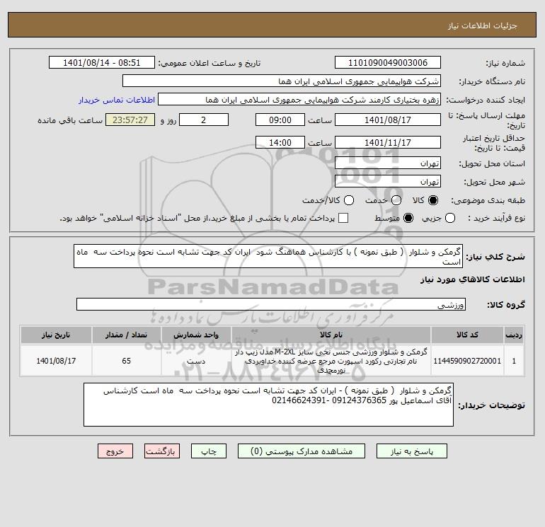 استعلام گرمکن و شلوار ( طبق نمونه ) با کارشناس هماهنگ شود ایران کد جهت تشابه است نحوه پرداخت سه ماه است, استعلام گرمکن و شلوار ( طبق نمونه ) با کارشناس هماهنگ شود ایران کد جهت تشابه است نحوه پرداخت سه ماه است