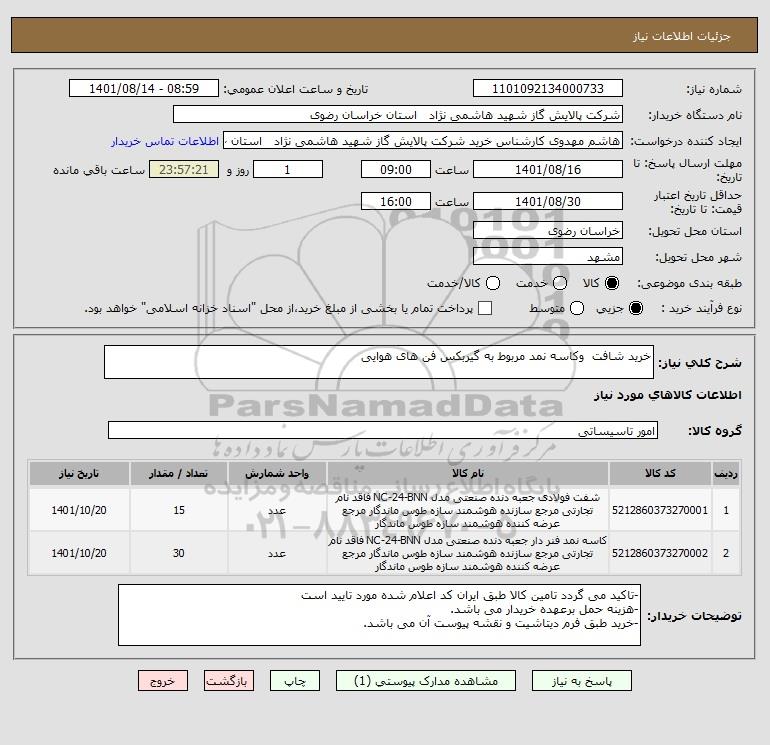 نام دستگاه خریدار:شرکت پالایش گاز شهید هاشمی نژاد استان خراسان رضوی