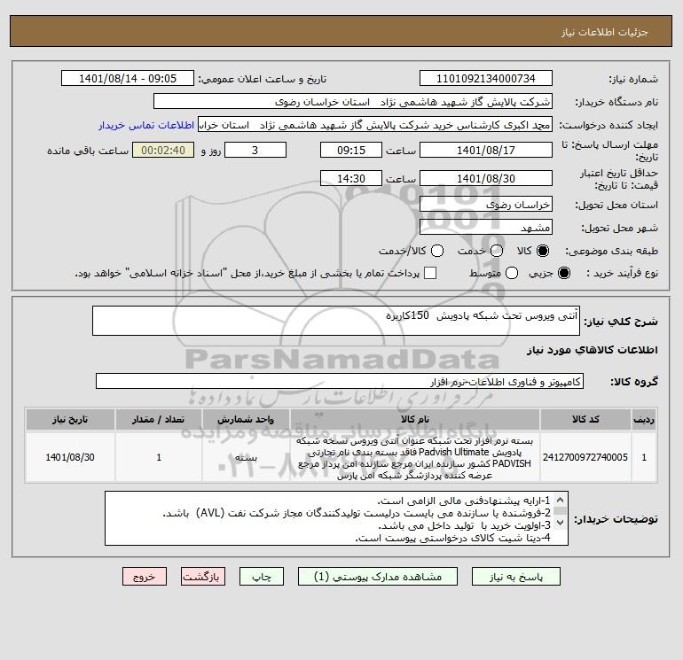 نام دستگاه خریدار:شرکت پالایش گاز شهید هاشمی نژاد استان خراسان رضوی