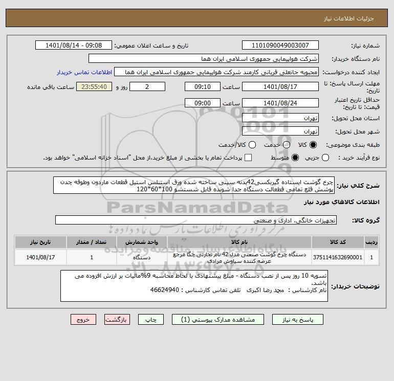 نام دستگاه خریدار:شرکت هواپیمایی جمهوری اسلامی ایران هما