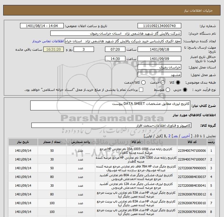نام دستگاه خریدار:شرکت پالایش گاز شهید هاشمی نژاد استان خراسان رضوی
