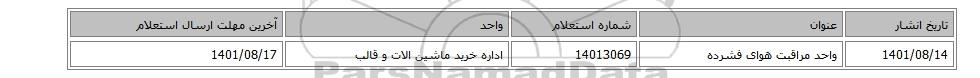 1401/08/14واحد مراقبت ‎هوای فشرده‏ ‎14013069اداره خرید ماشین الات و قالب1401/08/17