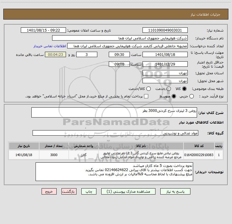 شرح کلی نیاز: روغن 3 لیتری سرخ کردنی3000 بطر