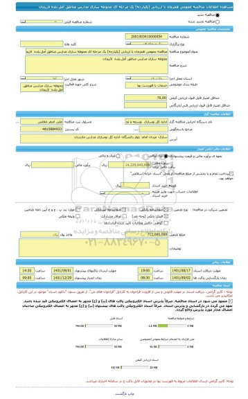 | نام دستگاه اجرایی مناقصه گزار | اداره کل نوسازی توسعه و تجهیز مدارس استان مازندران | مسئول ثبت مناقصه | علی اصغر غلامی |
