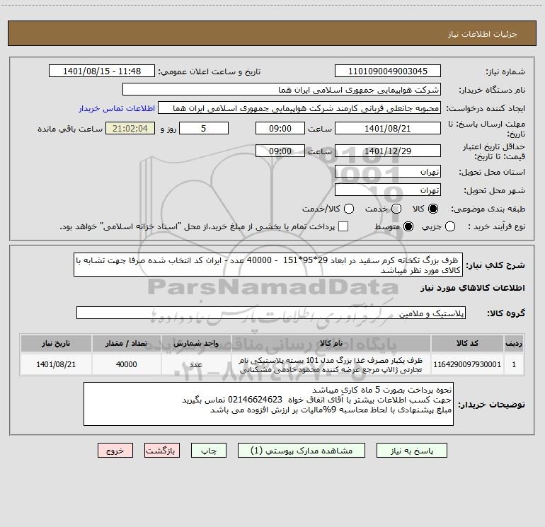 نام دستگاه خریدار:شرکت هواپیمایی جمهوری اسلامی ایران هما