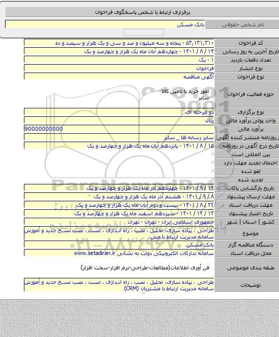 طراحی ، پیاده سازی، تحلیل ، نصب ، راه اندازی ، تست ، نصب نسخ جدید و آموزش سامانه مدیریت ارتباط با مشتریان (CRM)